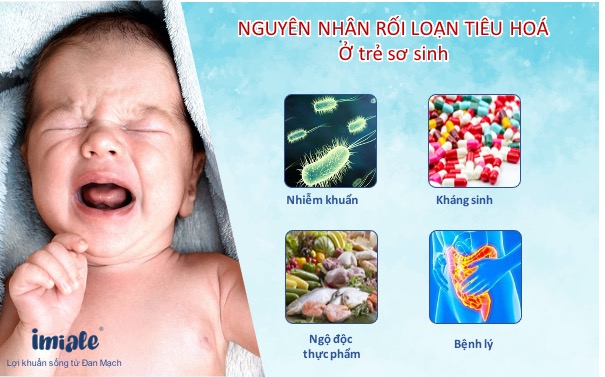 Trẻ sơ sinh dễ gặp tình trạng rối loạn tiêu hoá do hệ tiêu hoá ở trẻ sơ sinh còn rất non yếu, chưa đủ sức để chống lại các tác nhân xâm nhập. Vì vậy, trẻ sơ sinh dễ mắc các bệnh lí về tiêu hoá nhất, đặc biệt là chứng rối loạn tiêu hoá. Trẻ thường có các biểu hiện: